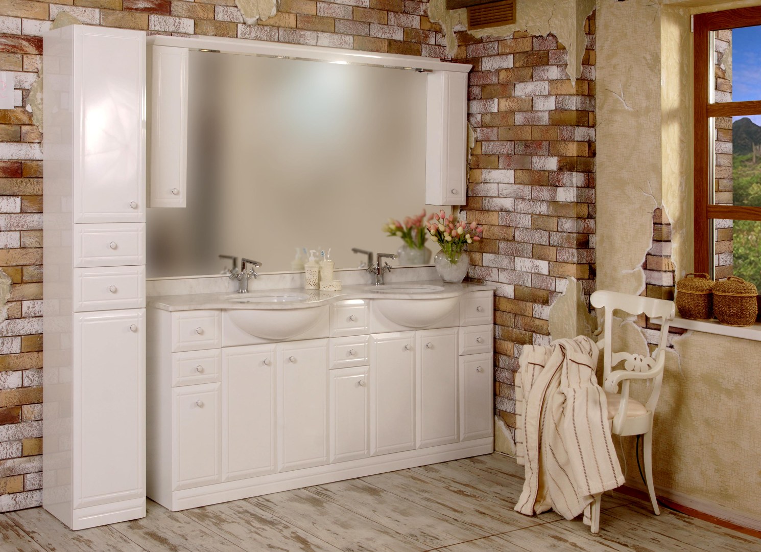 Многие люди предпочитают покупать эксклюзивные вещи и мебель, что подчеркнуло бы их индивидуальность. В таком случае это возможно с уникальной коллекцией для ванной комнаты «Богатырь» с широкими зеркалами. В России и Восточной Европе не изготавливают аналогов данной модели. Благодаря использованию именно столешниц из мрамора, появилась возможность изготавливать модели приличных размеров – до двух метров включительно.