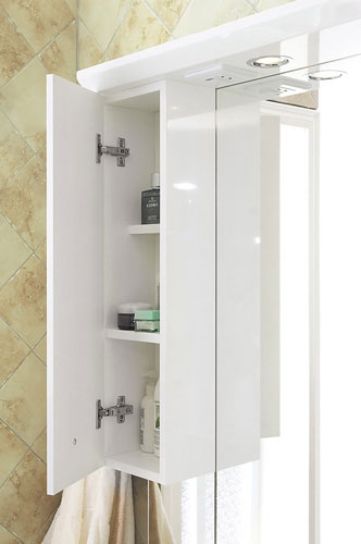 Зеркала комплектуются шкафчиком, розеткой и подсветкой из галогеновых светильников. Зеркальное полотно на серебряной амальгаме бельгийской компании GLAVERBEL (Бельгия).